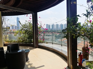 深圳市南山区华侨城波托菲诺纯水岸高端私密小区,西南向全湖景,顶层复式509平方米,步行15分钟到世界之窗地铁站. 环境幽静清新,南西北三面通透无遮挡. 去年刚刚重新装修过并换新了几乎所有家电,简欧精装.133寸4K高清3D立体投影,所有房间千兆有线网络,全屋自动浇灌花草系统.