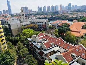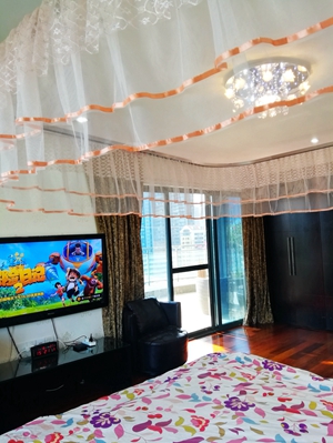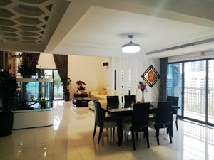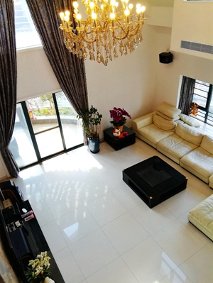 深圳市南山区华侨城波托菲诺纯水岸高端私密小区,西南向全湖景,顶层复式509平方米,步行15分钟到世界之窗地铁站. 环境幽静清新,南西北三面通透无遮挡. 去年刚刚重新装修过并换新了几乎所有家电,简欧精装.133寸4K高清3D立体投影,所有房间千兆有线网络,全屋自动浇灌花草系统.